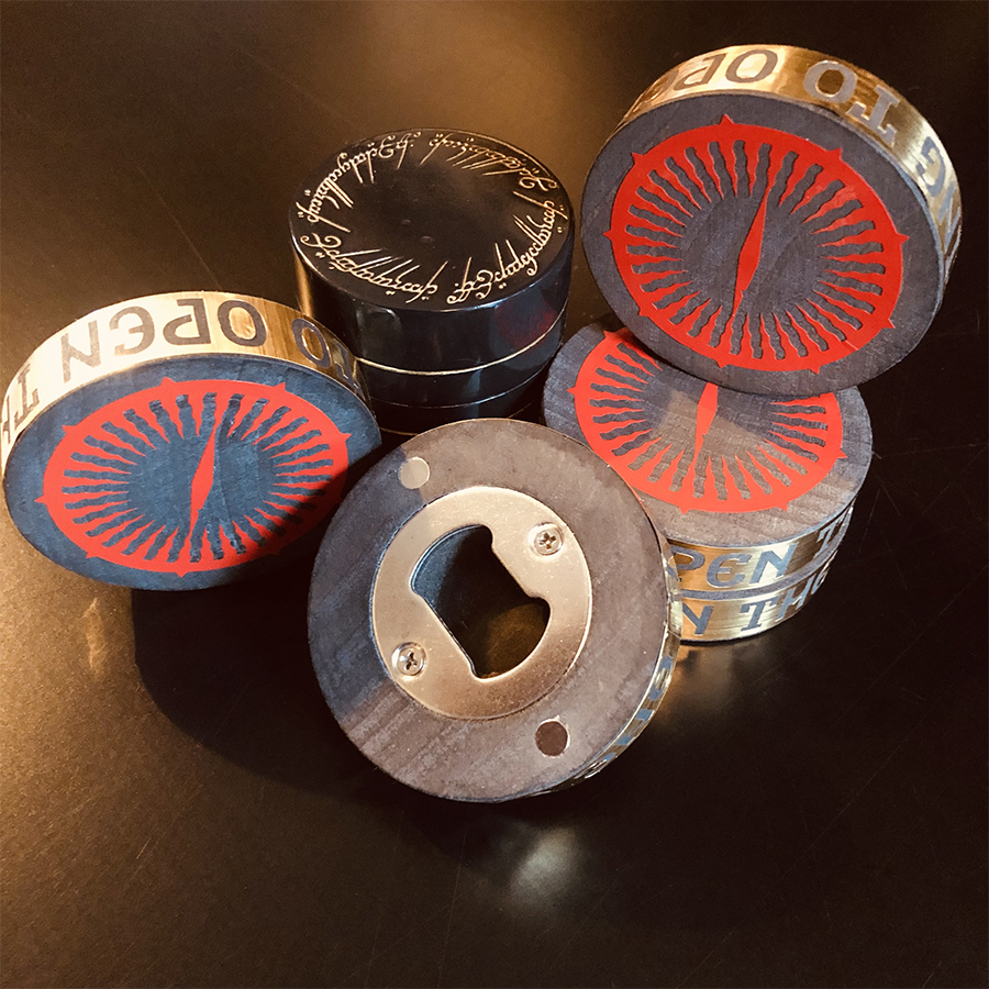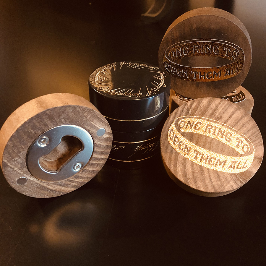 Ein Ring sie alle zu öffnen! Dieser praktische Kapselheber, aka Flaschenöffner, aus Holz hat neben seiner speziellen Fähigkeit des Öffnens allerlei Flaschen magischen und weltlichen Inhalts das besondere Talent, an magnetischen Flächen, wie Kühlschränken, zu haften. Diesen Schatz wollen wirklich alle in ihren Besitz bringen!